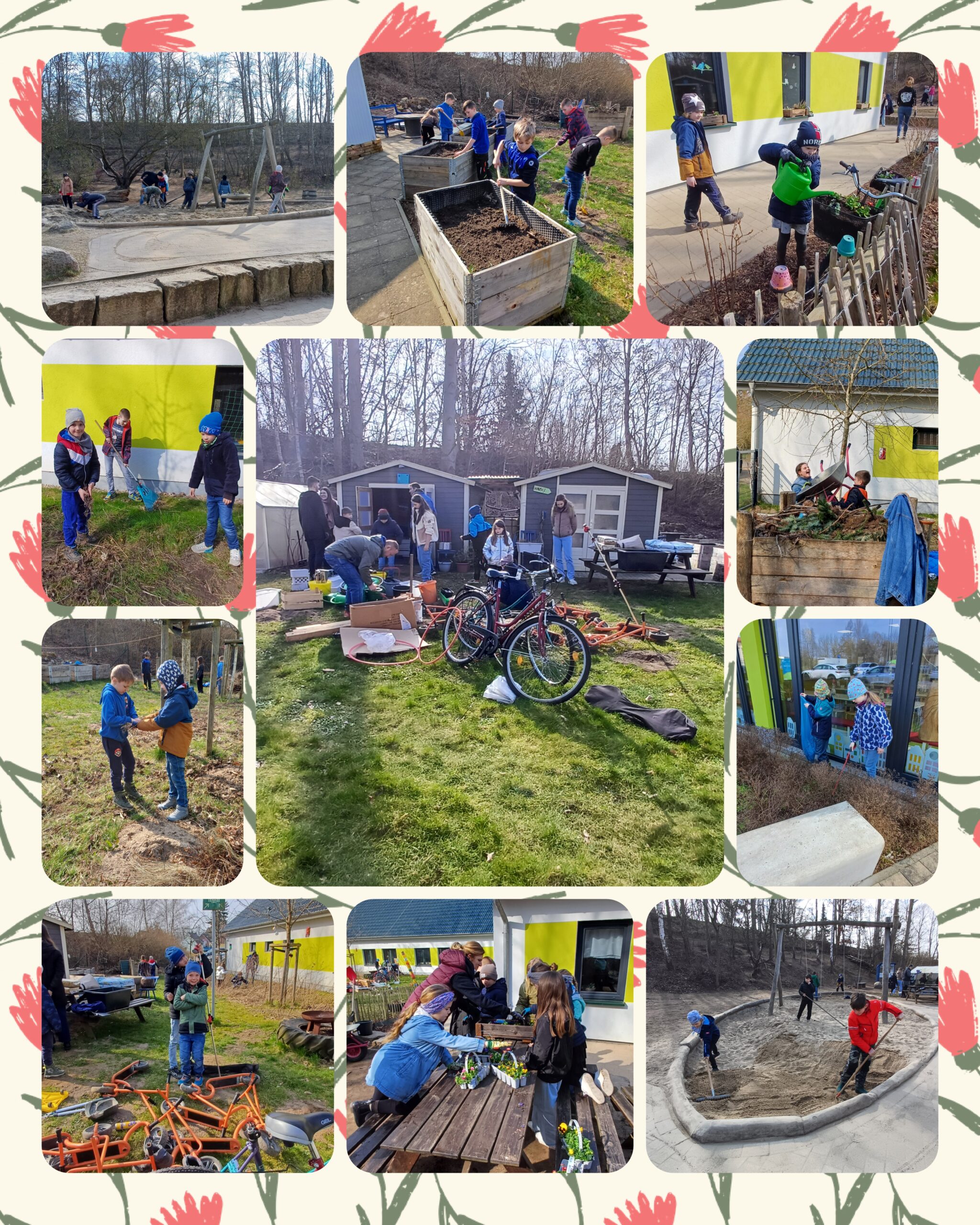 Nach dem großen Entrümpeln unserer Schuppen wurde der Schulgarten verschönert, Müll gesammelt, Unkraut gezupft, Sand in den Kästen aufgefüllt und gleichmäßig verteilt. In frühlingshaften Farben erstrahlt nun wieder unser Hof. Danke an alle fleißigen Hände!
