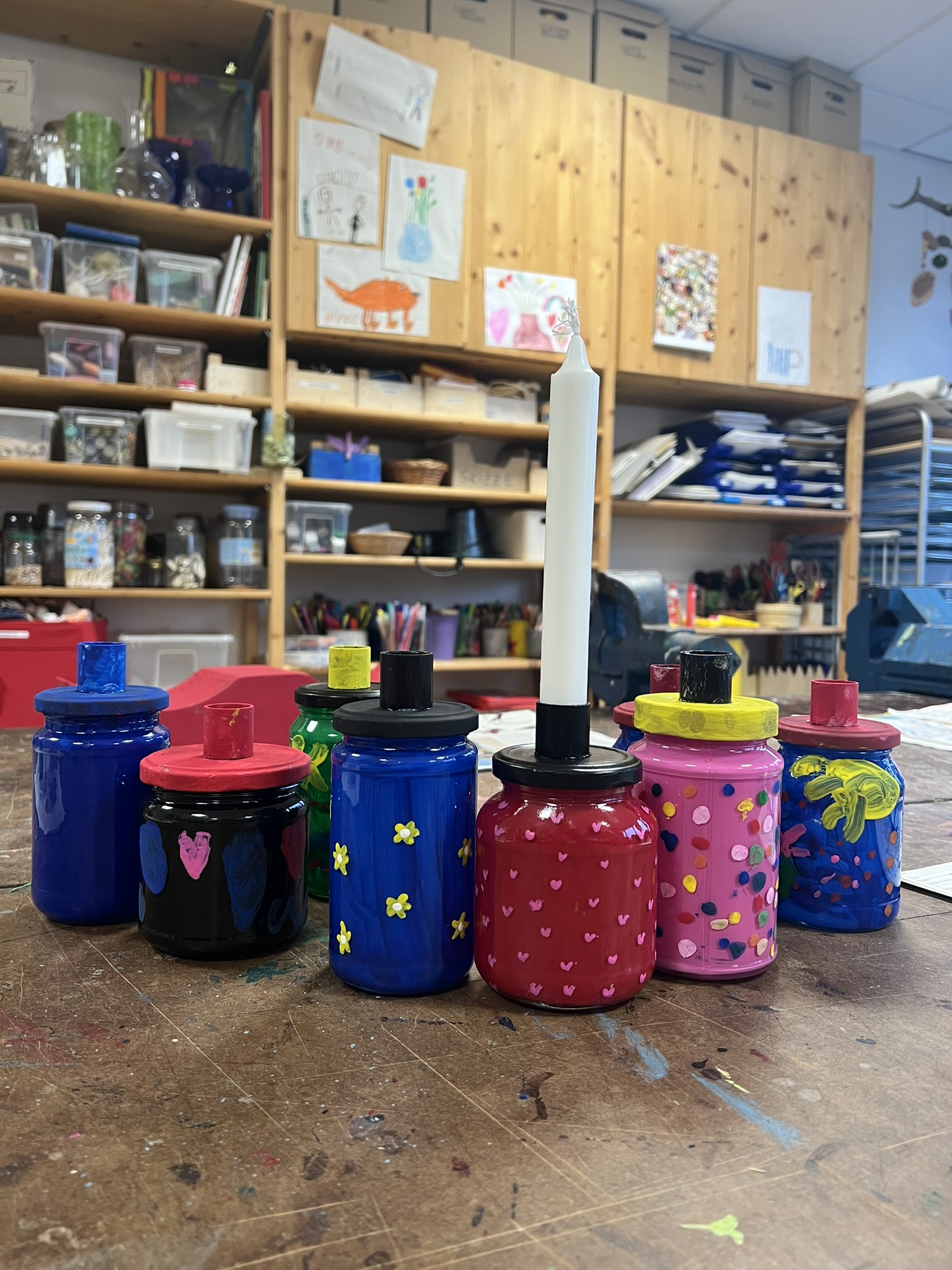 Upcycling hieß es am Freitag in den Winterferien. Aus alten Gläsern sind durch neue Farben und ein bisschen Geschick neue Kerzenhalter entstanden.