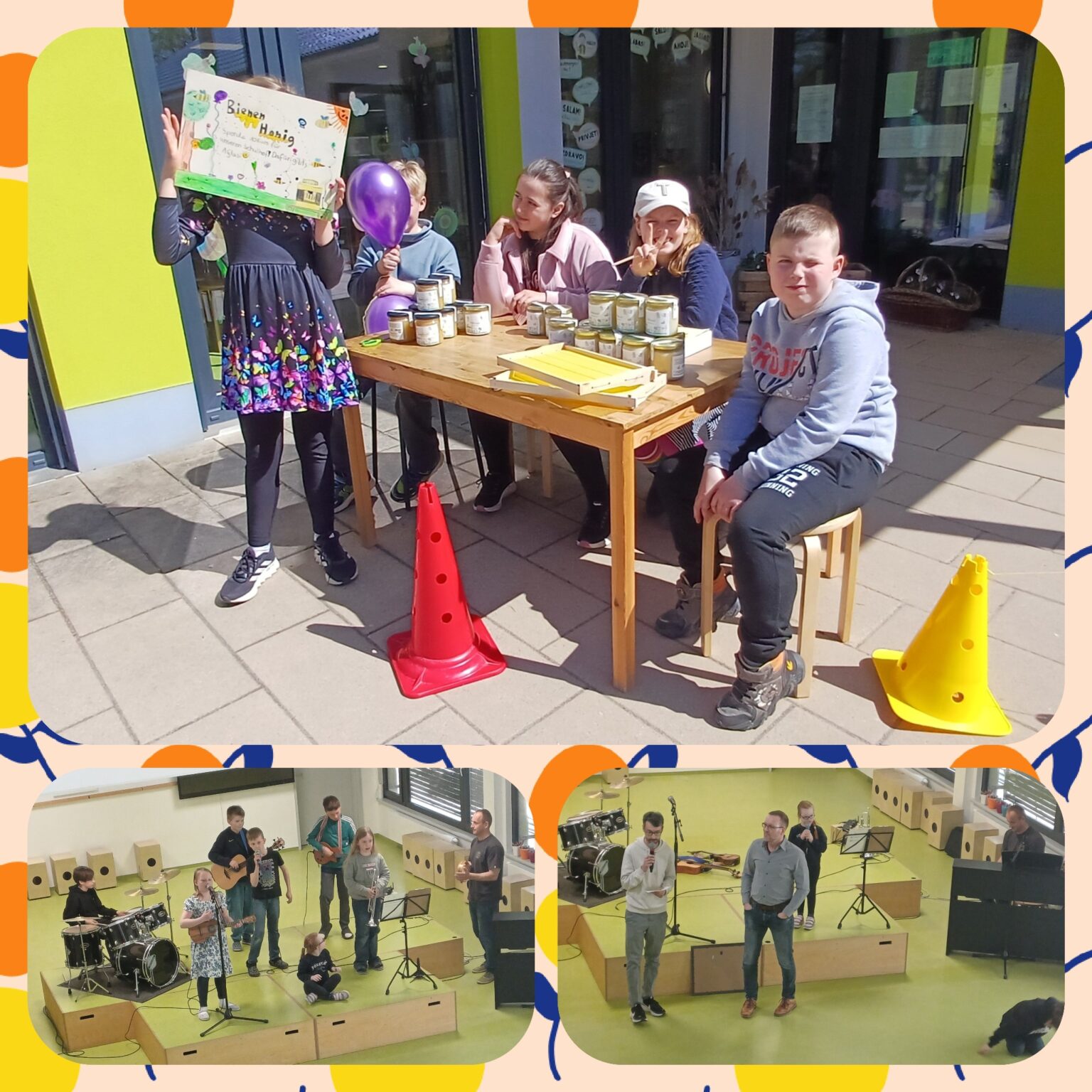 Zum heutigen Frühlingsfest hatten alle Kinder einige Attraktionen vorbereitet. Es wurde gesungen und Theater gespielt, unsere Schulband hat einige Lieder zum Besten gegeben und unsere Schülerzeitung wurde für einen guten Zweck verkauft. Bei tollem Kuchen und hervorragendem Wetter konnten alle Anwesenden gut ins Gespräch kommen. Wir bedanken uns bei allen Kuchen-und Obstspendern sowie allen helfenden Händen beim Auf-und Abbau.
